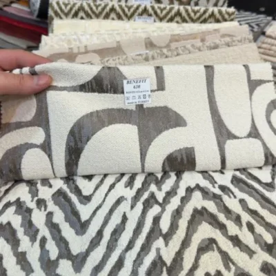 پارچه مبل شانل طرح جی بانجی رنگ طوسی کرم هندسی