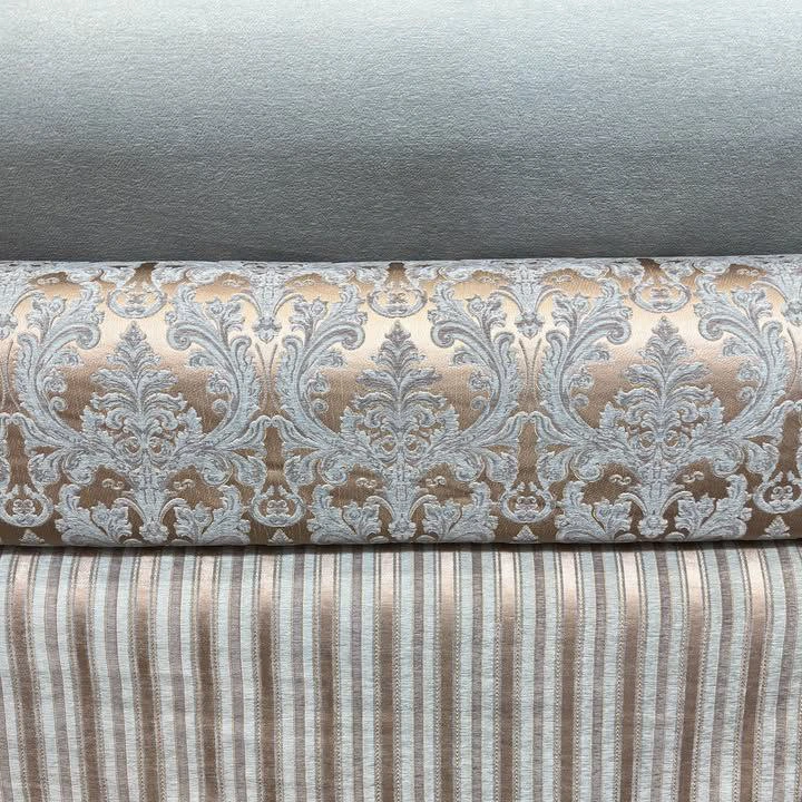پارچه مبل شانل طرح فیروزه رنگ نسکافه ای طوسی دارای طرح های زیبایی چون طرح گلدار درشت و طرح راه راه بسیار زیبا و پتینه که برای بدنه مبل استفاده میشود.